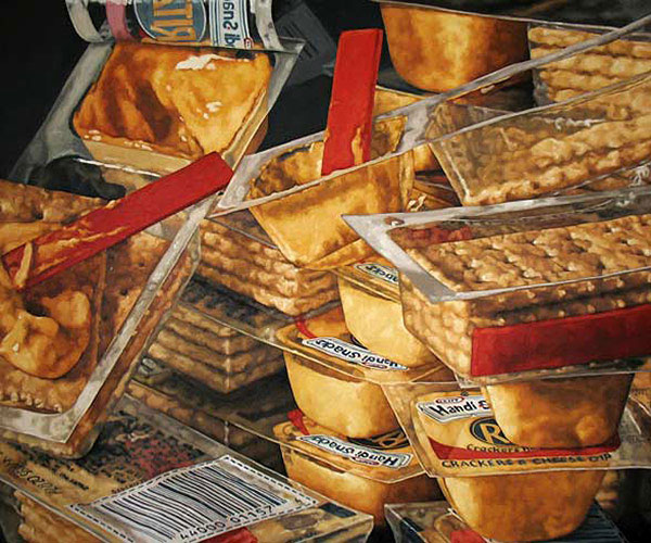 Posted by staff / August 16, 2010Artist Pamela Michelle Johnson believes American culture has as much to do with junk food as it does with freedom and strength. That’s why she painted this mouth-watering series entitled “American Still Life.” The paintings feature the nation’s favourite fatty foods from syrup-drenched waffled to sweets and of course, poptarts.