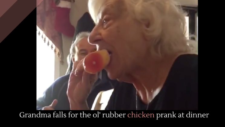 Read MoreGrandma falls for the ol’ rubber chicken prank at dinner