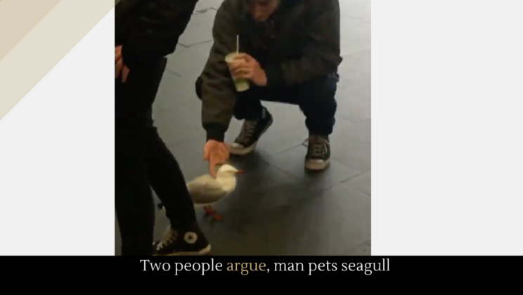 Read MoreTwo people argue, man pets seagull