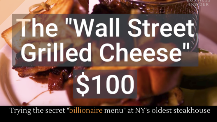 Posted by Josh Taylor / August 30, 2017Wall Street’s oldest steakhouse has a secret menu. A menu aptly called “the billionaire menu.” The things on it are ridiculous expensive––things like thirty-five dollar milkshakes and hundred dollar grilled cheese sandwiches.