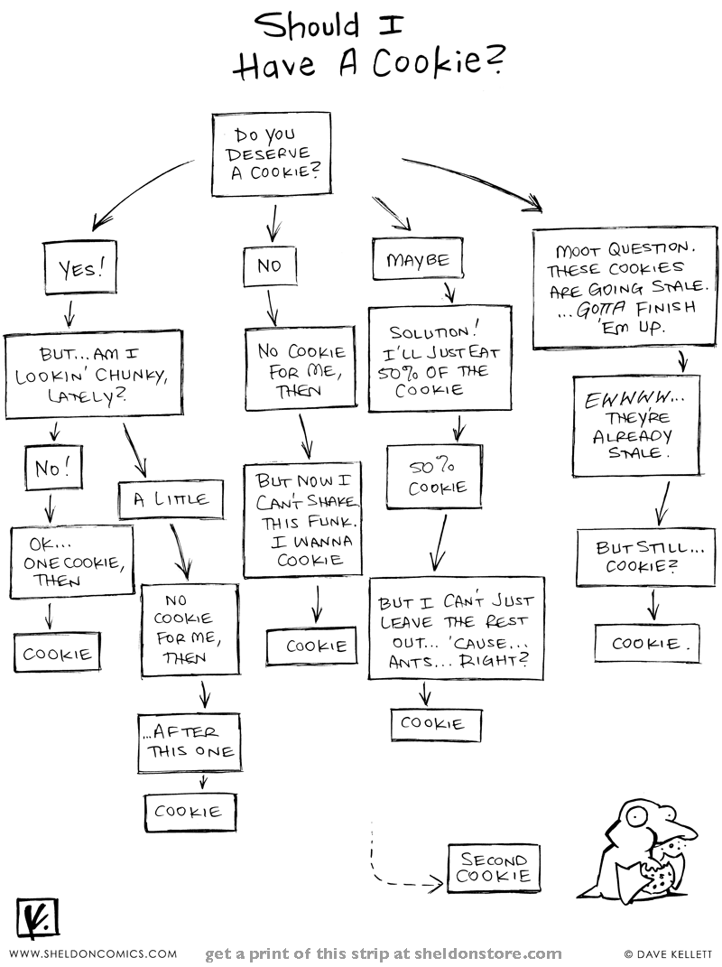 Cookie or no? [flowchart] Posted by staff / June 10, 2011 Full story at Sheldon Comics via Graph Jam. Just because it’s funny. Share Jun/10/11 Comments are off for this post. Convert more browsers into customers with the Weekly Roundup 15 years ago […] or no?Link: http://www.alltop.com/viral/cookie-or-no-flowchartMy Take: And finally, an extra fun link for the holiday weekend. If you need a website, consider […]