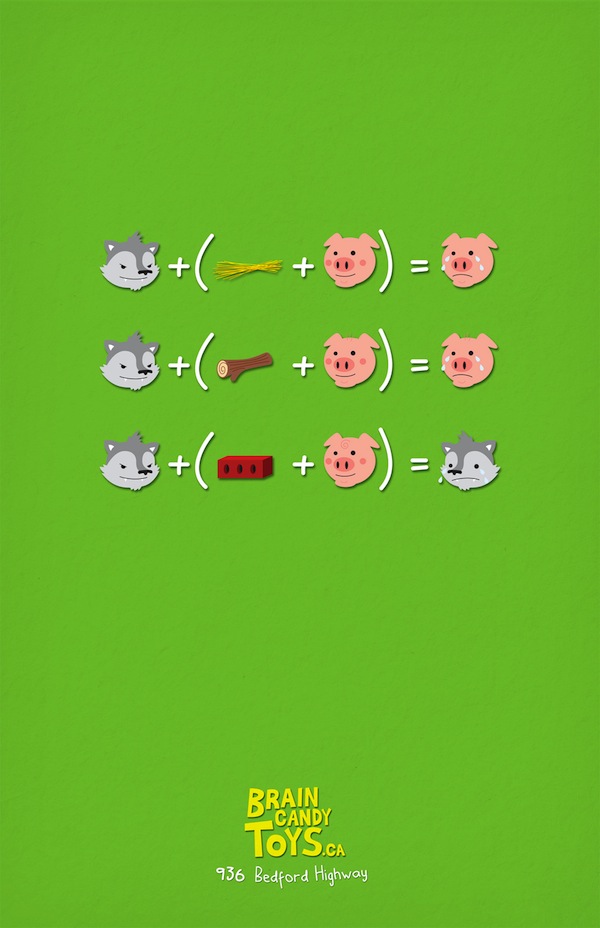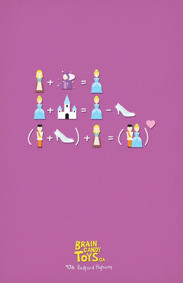 Nova Scotian ad agency Revolve created an impressive ad campaign for Brain Candy Toys that reduces well-known fairy tales to mathematical equations. See some of them below: