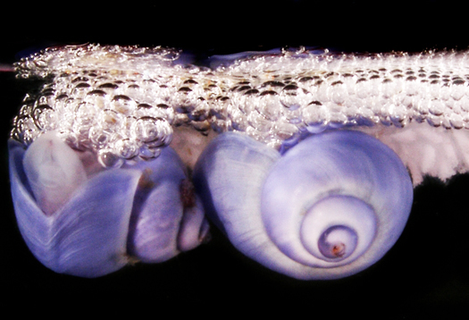 Posted by staff / October 14, 2011Instead of using slime to get around, a species of ocean-dwelling snail spends its life upside down, surfing on mucus bubbles that evolved from egg carriers to raft-like flotation devices.